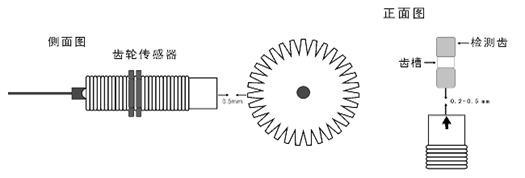 ◆ 安裝時傳感器的方向標(biāo)志線及檢測面要正對齒輪的中心。